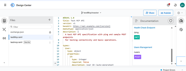 Me: “Create a test MCP spec with two endpoints, one is ping and the other is a sample post endpoint”